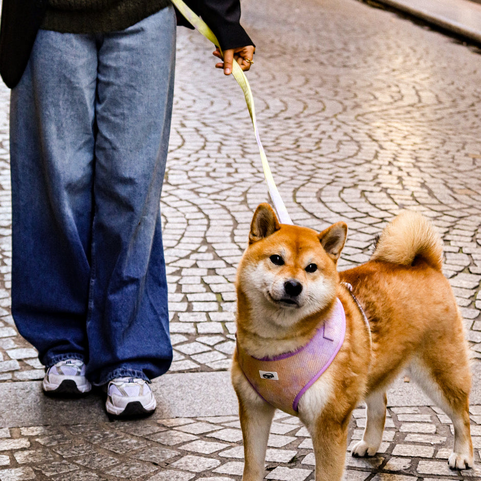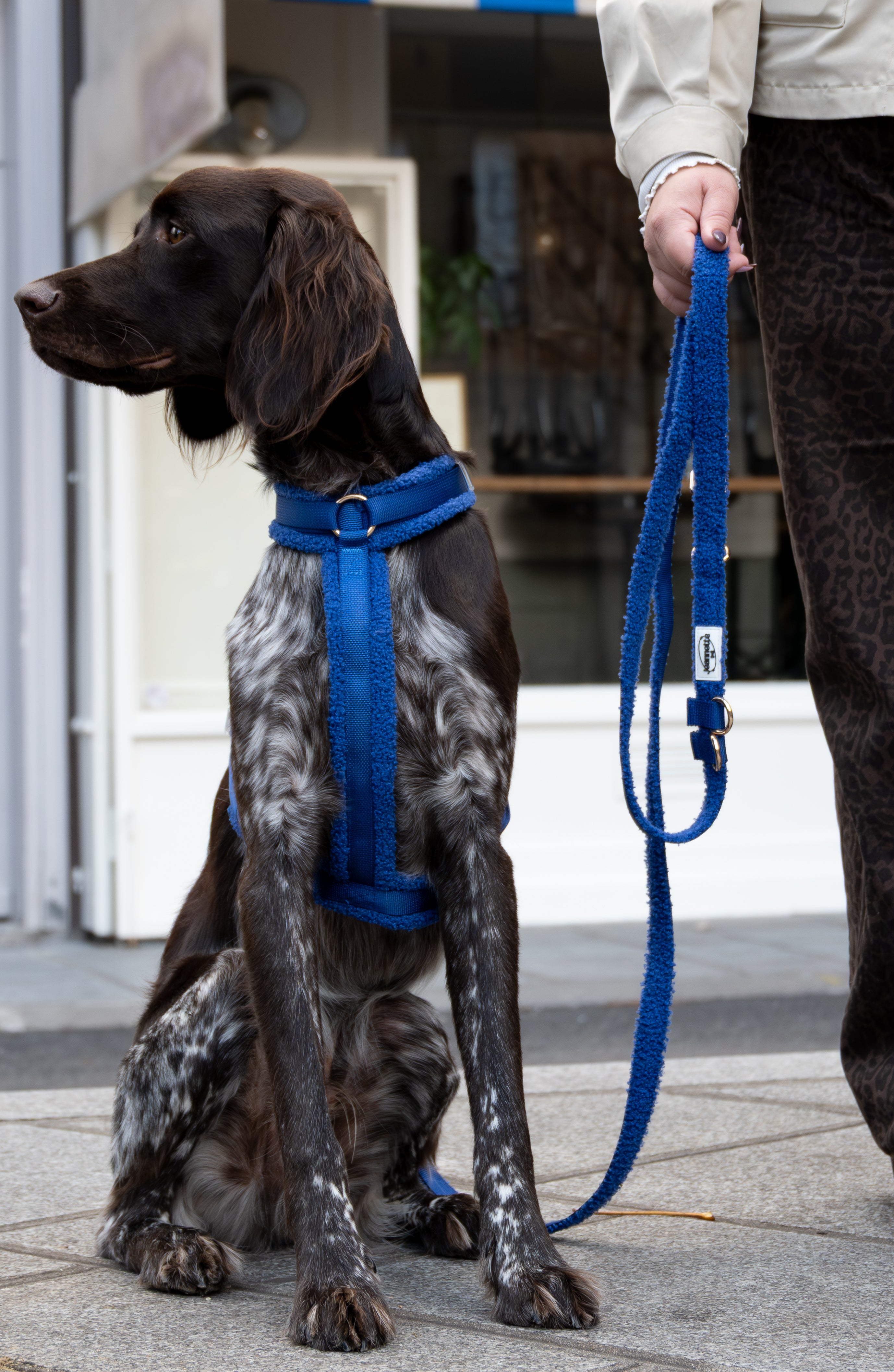 Tout en un : Harnais, poopbags et laisse pour des balades confortables et chics, les mains libres.